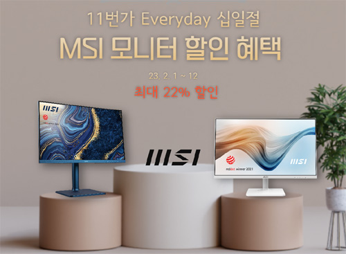 이번 행사는 2023년 2월 1일부터 12일까지 진행되며, 누구나 사용 가능한 선택쿠폰 15%에 농협/하나/신한카드 외 6종에서 받을 수 있는 카드할인 7%를 더해 최대 22% 특가 혜택을 제공한다. 행사 주요 제품에는 탄탄한 기본기에 다양한 환경에서 편리하게 사용할 수 있는 부가기능, 그리고 일반적인 블랙 컬러에서 벗어나 감각적인 디자인의 감성을 채택한 MSI 모던시리즈 ‘MSI 모던 MD241P 울트라마린’과 ‘MSI 모던 MD272PW’가 포함됐다.