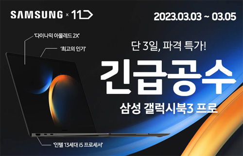 유니씨앤씨는 2023 신학기를 맞아 인텔 13세대 i5 프로세서와 고해상도 WQXGA+ AMOLED 디스플레이를 탑재한 삼성 갤럭시북3 프로 NT940XFT-A51A 대상으로 최대 36만원 중복 할인과 푸짐한 사은품이 증정되는 ‘긴급공수’ 프로모션을 2023년 3월 3일부터 5일까지 11번가를 통하여 단독 진행한다.