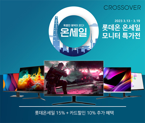 크로스오버는 자사의 인기 모니터 90종을 대상으로 롯데온 2023년 3월 온세일 특가 할인전을 진행한다고 밝혔다.