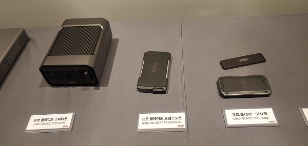 프로 블레이드 트랜스포트: 프리미엄 모듈식 포터블 SSD 케이스로, 프로 블레이드 SSD 맥을 USB 타입 C™(20Gbps) 규격의 프로 블레이드 트랜스포트에 장착해 최대 2,000MB/s 읽기 및 쓰기 속도[2]로 사용할 수 있다. 유저들은 프로 블레이드 SSD 맥을 손쉽게 탈부착할 수 있어 테라바이트급 스토리지 용량을 작은 부피 안에 휴대 가능하다. 또한 프로 블레이드 트랜스포트를 USB 타입 C와 호환되는 카메라 리그(rig)와 연결하면 내부에 장착된 프로 블레이드 SSD 맥에 직접 고화질 녹화를 진행할 수 있으며, 프로 블레이드 SSD 맥을 교체하면서 촬영할 경우 끊김 없는 연속적인 촬영이 가능하다. 프로 블레이드 트랜스포트는 출시된 상태로, 국내 소비자권장가격 기준 용량에 따라 0TB 132,000원, 1TB 440,000원, 2TB 660,000원, 4TB 1,210,000원으로 구매 가능하다.