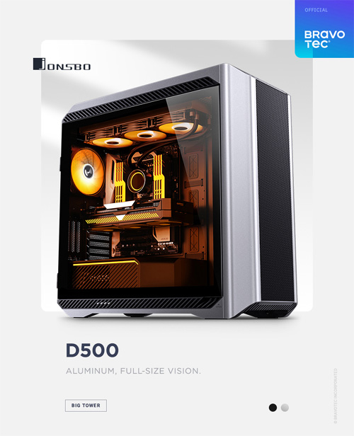 브라보텍에서 알루미늄 합금의 견고하고 고급스러운 디자인에 11개 스토리지와 고성능 컴포넌트를 지원하는 탁월한 확장성의 풀타워 PC 케이스 JONSBO D500 모델의 BLACK 색상에 이은 SILVER 색상을 신규 출시한다.