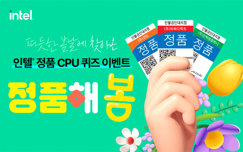 인텔 공인대리점 피씨디렉트, 인텍앤컴퍼니, 코잇 등 3사가 2023년 봄을 맞이한 ‘따듯한 봄날에 찾아온 정품해봄’ 인텔 정품 CPU 퀴즈 프로모션을 실시한다.