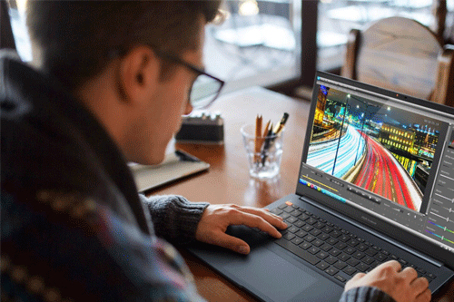 전문작업에 최적화된 최상급의 크리에이터 노트북 답게 뛰어난 디스플레이 성능을 보여준다. 15.6형 2.8K(2880x1620) OLED 디스플레이 탑재로 OLED 디스플레이 특유의 선명함과 생생함을, DCI-P3 100%의 넓은 색 영역으로 시각 작업물을 실제 색상에 가깝도록 표현해준다. 일반 노트북 대비 50배 빠른 0.2ms의 응답 시간과 120Hz 고주사율로 끊김 없이 자연스러운 화면 제공하며 550nit HDR 피크 밝기로 언제 어디서든 밝고 선명한 화질 감상이 가능하다. 시력 보호 기능인 TUV 인증, '팬톤 컬러 인증'으로 장시간의 영상 편집 및 그래픽 작업에도 쾌적한 디스플레이 환경을 제공한다.