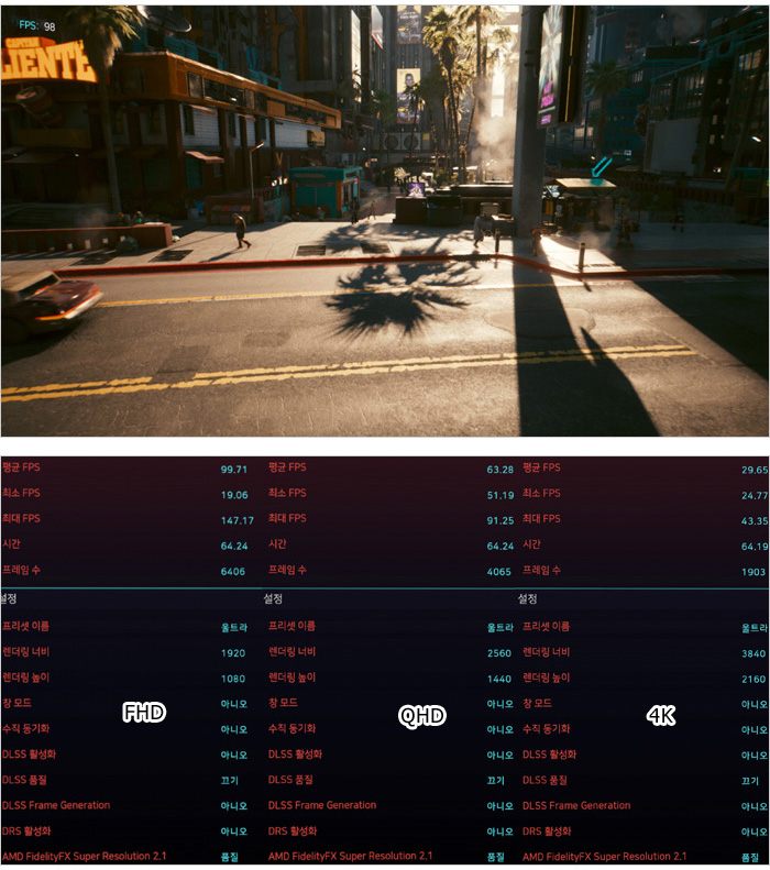 단, 하이엔드 시스템과는 분명한 성능차를 보인다. 상단의 사진은 사이버펑크 2077 벤치마크를 울트라 옵션으로 실행한 모습으로 QHD 에서도 평균 63 프레임을 보여주었다. (참고로 13900K 와 RTX 4080을 사용한 시스템에서는 QHD에서 평균 147프레임을 보여주었다.) 가성비에 특화되어 있지만 만능은 아니라는 것을 말씀 드린다.