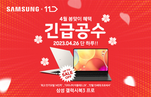 유니씨앤씨는 인텔 13세대 i5 프로세서와 고해상도 WQXGA+ AMOLED 디스플레이를 탑재한 삼성 갤럭시북3 프로 NT940XFT-A51A 대상으로 최대 34만원 중복 할인과 푸짐한 사은품이 증정되는 ‘긴급공수’ 프로모션을 2023년 4월 26일 단 하루 동안 11번가를 통하여 진행한다.