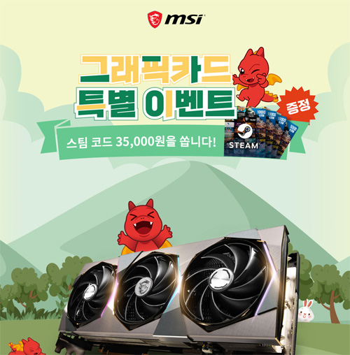 MSI는 자사의 그래픽카드를 구매한 고객들에게 스팀 코드 3만 5천원을 증정하는 행사를 진행한다고 밝혔다.
