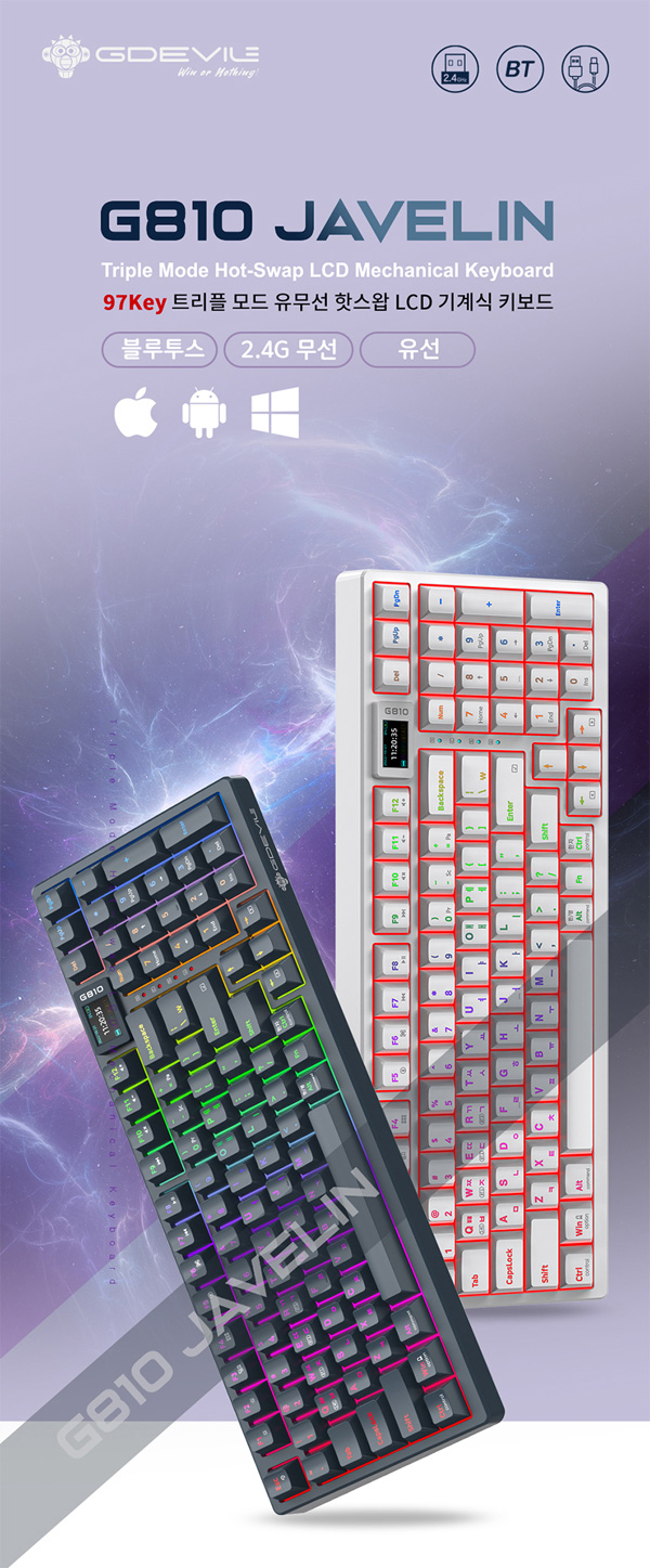 GDEVIL은 트리플모드의 97키 LCD 게이밍 키보드인 G810 JAVELIN 을 출시했다.