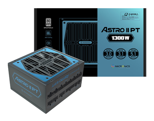 마이크로닉스는 차세대 파워서플라이 규격인 ATX 3.1 및 80 플러스 플래티넘 인증이 특징인 ASTRO II PT 1300W ATX 3.1을 출시한다.