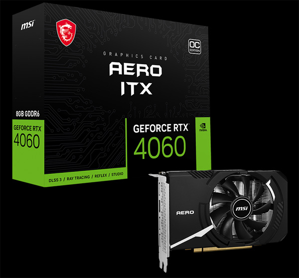 MSI는 NVIDIA Ada Lovelace 아키텍쳐 기반 지포스 RTX 4060을 탑재한 ‘MSI 지포스 RTX™ 4060 에어로 ITX’ 그래픽카드를 출시한다.