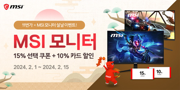 2024년 2월 1일부터 15일까지 진행되는 이번 행사는 설 명절 기간을 포함하여 풍요로운 할인 혜택을 제공한다. 누구나 적용할 수 있는 15% 선택쿠폰과 10% 카드할인을 더해 최대 25%의 파격적인 할인율로 MSI 인기 모니터를 만날 수 있다.