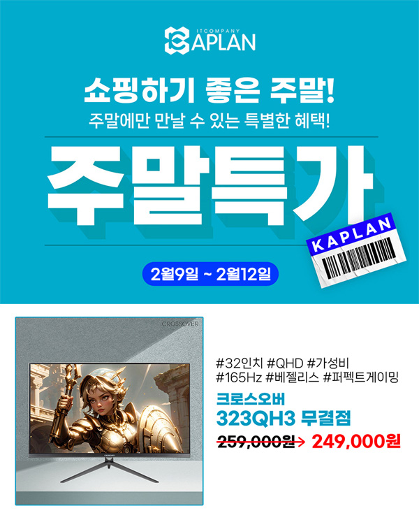 크로스오버는 32인치 고해상도 게이밍 모니터 ‘323QH3 GAMING 165 HDR 평면 PLUS’를 대상으로 주말 이벤트를 실시한다.