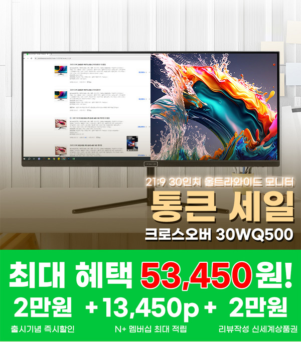 크로스오버가 30형 WFHD 100Hz를 지원하는 모니터 ‘크로스오버 30WQ500 UW-IPS 울트라와이드’ 출시를 기념하기 위해 파격 이벤트를 진행한다.