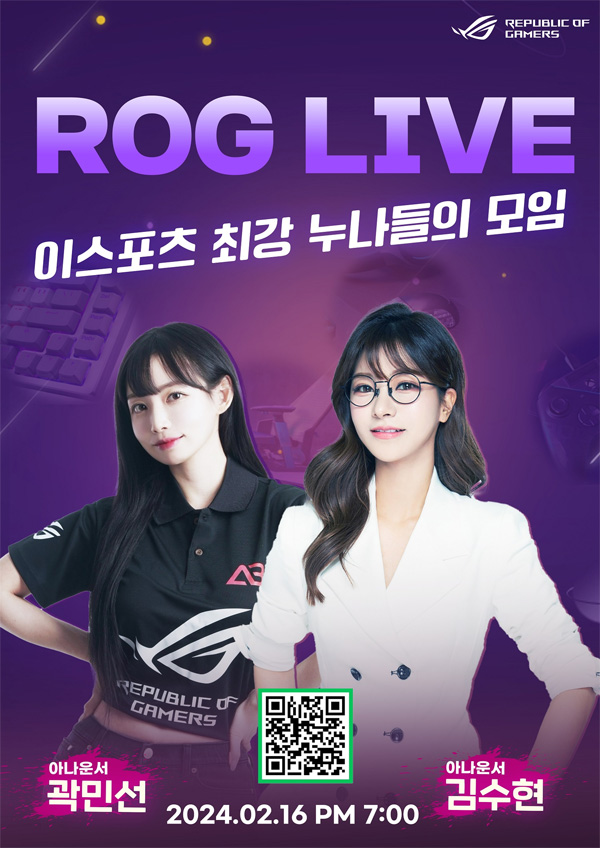에이수스는 곽민선, 김수현 아나운서와 함께 ROG 라이브 커머스를 진행한다고 밝혔다. 게이밍기어 제품 관련 다양한 혜택과 할인이 적용되는 이번 ROG 라이브 커머스는 2월 16일 금요일 오후 7시부터 8시까지 1시간가량 진행되며 네이버 쇼핑 라이브에서 만날 수 있다.