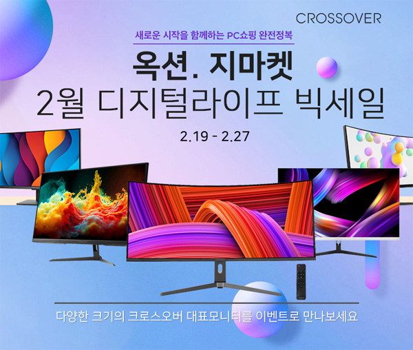 크로스오버는 자사의 인기 포터블, 게이밍, 고해상도 모니터들을 대상으로 옥션 지마켓 2월 디지털라이프 빅세일을 펼친다고 밝혔다.