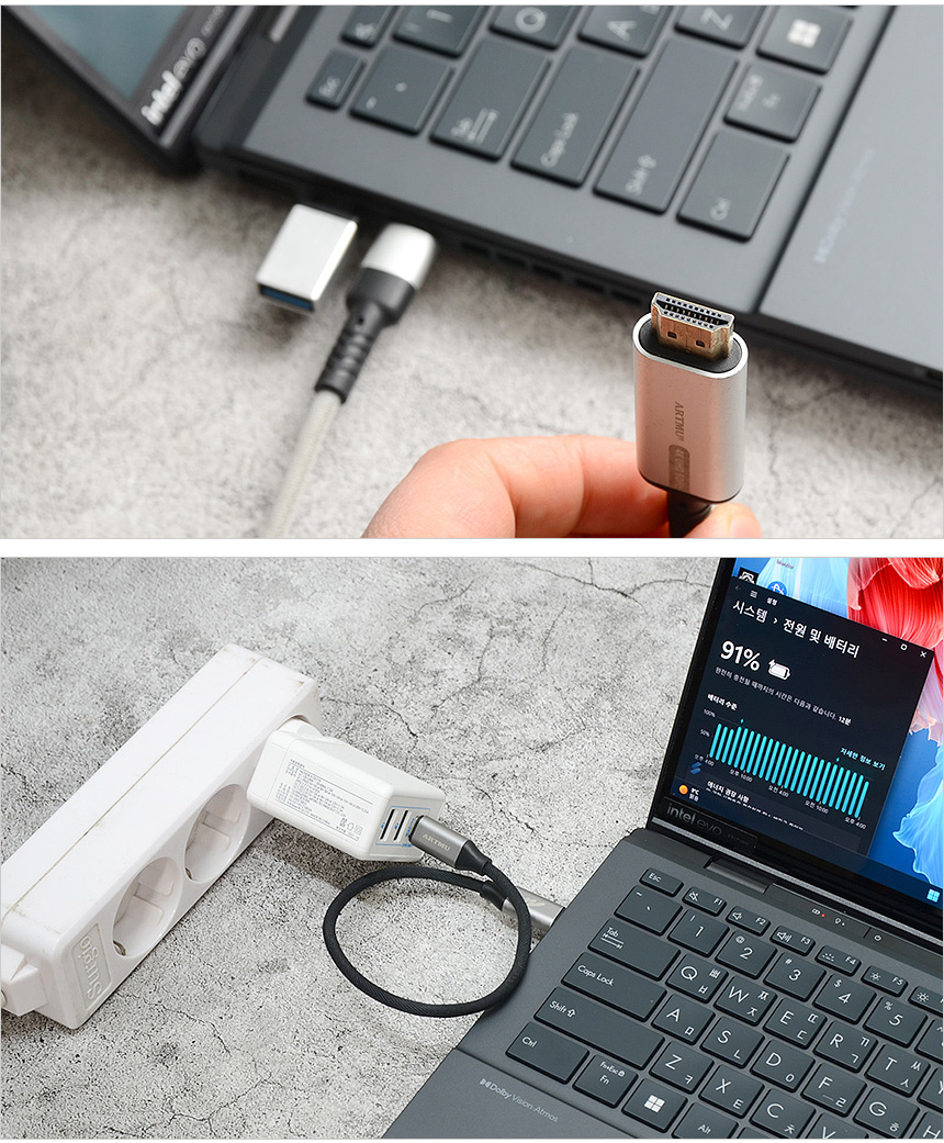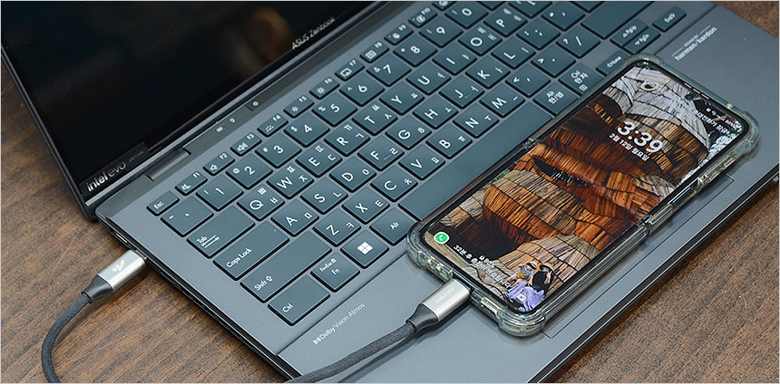 썬더볼트 4 단자는 상시전원을 지원해 노트북이 꺼진 상태에서도 스마트폰을 충전할 수 있다.