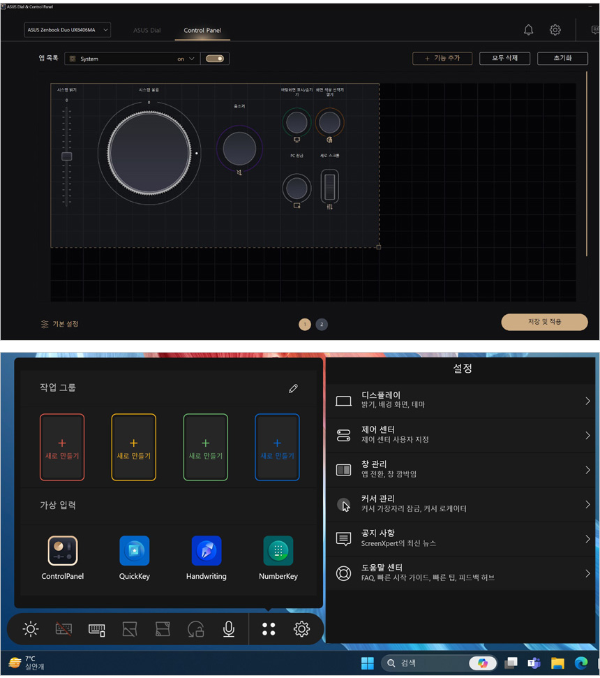 사용자가 컨트롤 패널을 구성해 전문가용 S/W에 서 활용할 수 있으며 (보조 디스플레이에 컨트롤 패널을 띄어두고 터치도 프로그램을 조작할 수 있다.) 듀얼 디스플레이의 활용성을 극대화 하기 위해 ScreenXpert 앱을 지원해 사용자에 맞게 노트북을 셋팅할 수 있다. (도움말의 빠른 가이드를 선택하면 사용방법 및 활용법을 손쉽게 익힐 수 있다.)