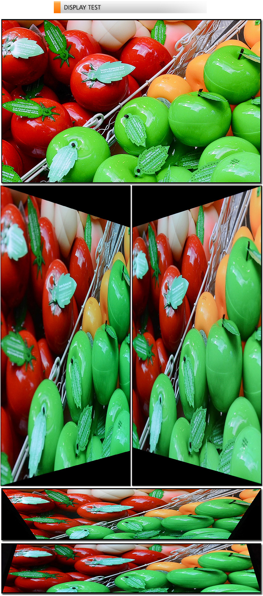 OLED 패널을 탑재해 어떤 각도에서도 선명한 영상을 즐길 수 있다. 상단의 사진은 시야각 테스트를 진행한 모습으로 극단적인 각도에서도 반전이나 채도저하가 발생하지 않았다. (색이 약간 빠져 보이는 것은 촬영상의 문제일뿐 실제 보면 어느 각도에서나 색이 선명하다.)