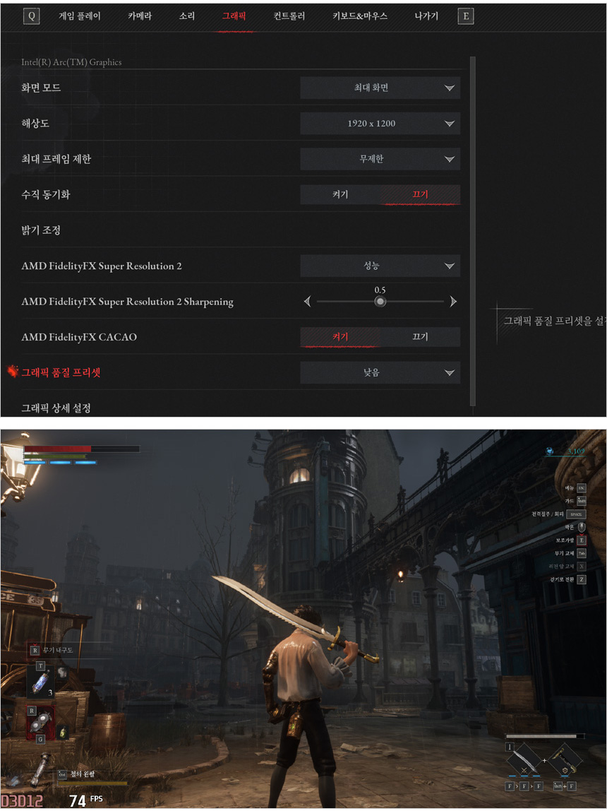 P의 거짓을 낮음 옵션에서 플레이 하고 있는 모습으로 63-80 프레임으로 게임을 즐길 수 있었다. 불편없이 게임을 플레이 할 수 있을 것이다.