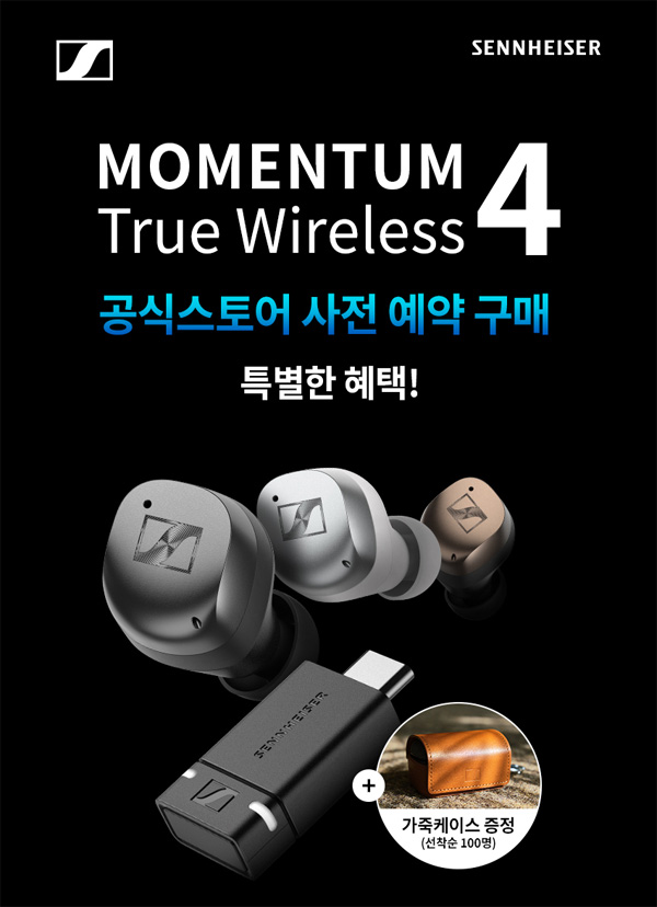 젠하이저는 신제품 ‘모멘텀 트루 와이어리스 4’의 사전 예약 판매를 오는 17일부터 진행하며, 사전 구매 고객을 대상으로 ‘aptX™ 어댑티브’ 연결을 지원하는 블루투스 USB 동글 'BTD 600'을 증정하는 이벤트를 29일까지 진행한다. 추가로 선착순 100명에게는 ‘모멘텀 트루 와이어리스 4’의 고급 가죽 케이스를 증정한다.