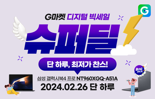 유니씨앤씨는 디지털·라이프 빅세일을 맞아 최신 인텔 코어 울트라 프로세서와 WQXGA+ Dynamic AMOLED 2X 터치스크린을 탑재한 삼성 갤럭시북4 프로 NT960XGQ-51A을 최대 47만원 할인과 스타벅스 파우치, 한컴 오피스팩, 삼성 케어 플러스, 갤럭시북 제휴 콘텐츠 등의 푸짐한 혜택이 증정되는 ‘슈퍼딜’ 프로모션을 2024년 2월 26일 단 하루 동안 G마켓을 통하여 진행한다.