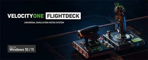 ‘벨로시티원 플라이트덱 (VelocityOne Flight Deck)’은 프리미엄 시뮬레이션 HOTAS 시스템으로 최상의 시뮬레이션 경험을 위해 설계되었으며, 최신 항공기와 첨단 제트 전투기에서 영감을 받아 15개의 축가 139개의 프로그래밍 기능을 갖춘 플라이트 터치 디스플레이와 OLED 헤드업 디스플레이를 통해 사용자에게 최적화된 커스터마이징을 제공한다. 특히, Windows PC용 Flight Hangar 앱을 사용해 쉽고 다양한 설정 변경이 가능하다.