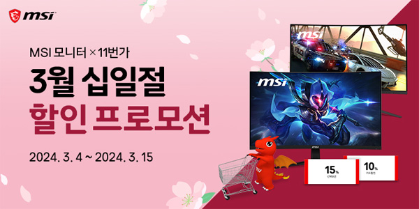 MSI는 11번가에서 진행하는 ‘3월 Everyday 십일절’ 할인 행사에 참여해 인기 모니터 대상의 특가 소식을 전했다.