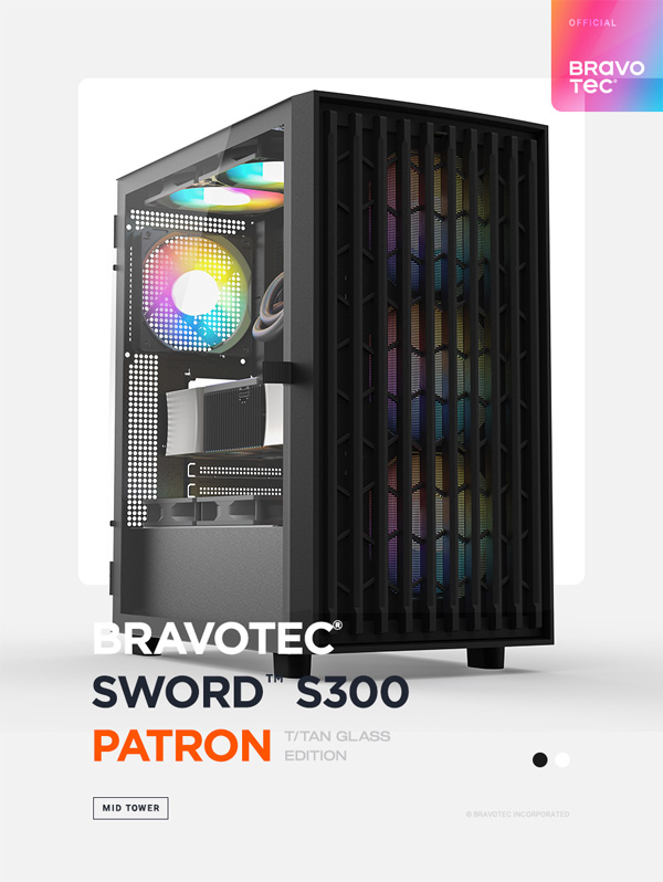 브라보텍에서 전면 풀메쉬 디자인과 측면 스윙도어 강화유리, 140mm RGB 팬 쿨러 4개 기본 탑재에 탁월한 확장성과 쿨링 퍼포먼스를 갖춘 PC 케이스 SWORD S300 PATRON 타이탄 글래스를 출시한다.