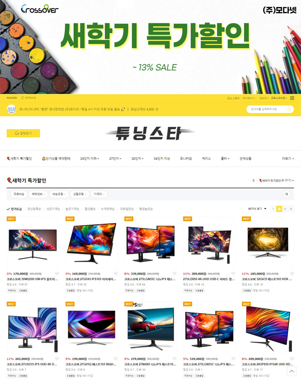 크로스오버는 자사의 인기 포터블, 게이밍, 고해상도 모니터들을 대상으로 3월 네이버 스마트스토어 새학기 특가전을 펼친다.