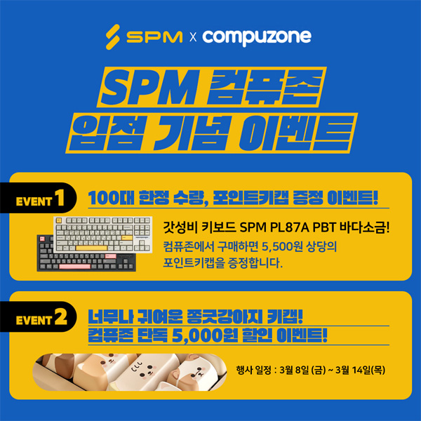 SPM에서 컴퓨존 입점 기념 키캡 증정 및 할인 이벤트를 진행한다.