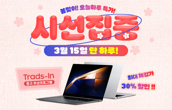 유니씨앤씨는 최신 인텔 코어 울트라 프로세서와 WQXGA+ Dynamic AMOLED 2X 터치스크린을 탑재한 삼성 갤럭시북4 프로 NT960XGQ-51A을 최대 54만원 할인과 트레이드인 혜택, 신세계 상품권, 스타벅스 파우치, 한컴 오피스팩 등의 푸짐한 사은품이 증정되는 ‘시선집중’ 프로모션을 2024년 3월 15일 단 하루 동안 11번가를 통하여 진행한다.