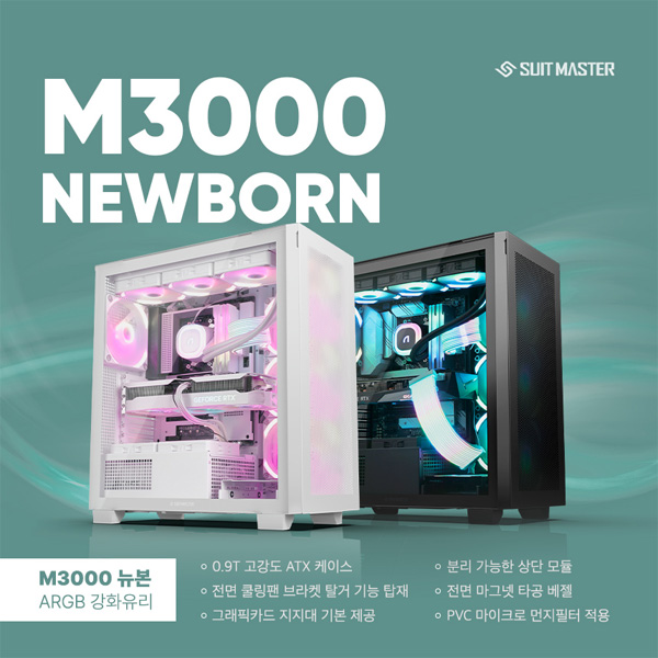 앱코에서 하이엔드 ATX에 걸맞는 입체쿨링을 위한 디자인 케이스, ‘SUITMASTER M3000 뉴본 ARGB 강화유리’ (이하 M3000 뉴본)를 출시했다.
