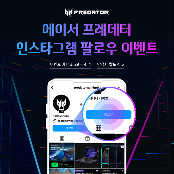 에이서, 프레데터 인스타그램 한국계정 오픈 팔로우 이벤트 진행