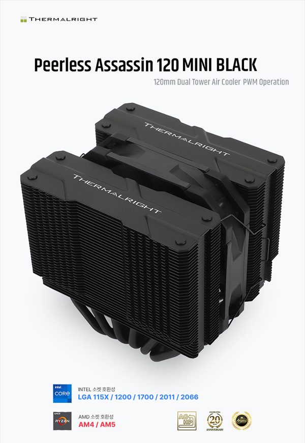 서린씨앤아이가 서멀라이트의 신규 CPU 공랭 쿨러, 피어레스 어쌔씬 120 미니를 정식 출시했다.