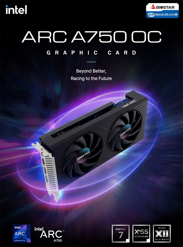 제이씨현시스템은 BIOSTAR 브랜드의 인텔 아크 A750 OC 그래픽카드를 공식 출시한다.