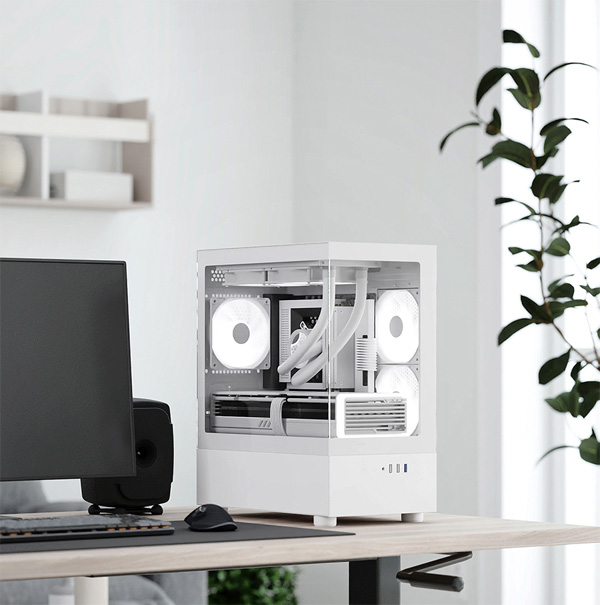 비바리움 미니는 케이스 전면과 측면에 파노라믹 글라스를 적용하여, 내부 시스템을 좀 더 개방감 있게 표현할 수 있다.?또한 LED ON/OFF 기능이 내장된 120mm 화이트 LED 팬 3개가 기본 장착되어 있다.? 제품 전면에 깔끔한 블레이드 전면을 노출시키는 리버스 팬 2개(흡기)를 장착했으며, 후면에는 배기 역할을 하는 일반 팬이 설치되어 있다.??