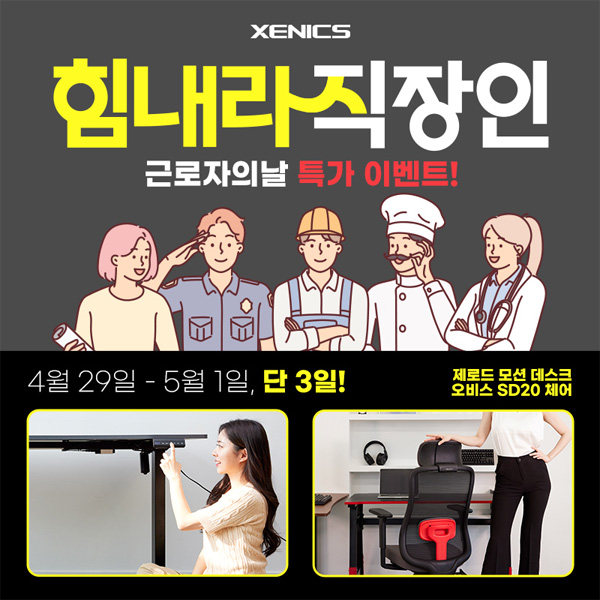 제닉스는 높이조절 책상 제닉스 제로드 스탠다드 모션데스크의 1600화이트 전동제품의 2차 입고에 맞춰 근로자의 날 감사 이벤트를 진행한다고 전했다.