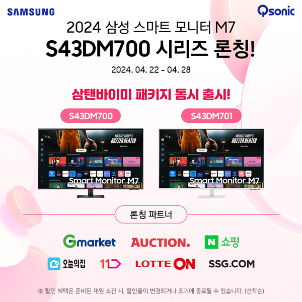 큐소닉이 ‘2024 삼성 스마트 모니터 M7 S43DM700 시리즈’를 출시했다.