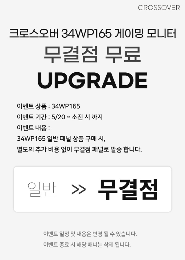 크로스오버가 34형 커브드 게이밍 모니터 ‘34WP165 커브드 리얼 165 울트라와이드 멀티스탠드’ 앵콜 특가를 진행한다.