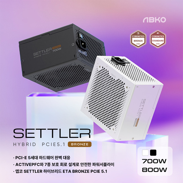 앱코에서 기존 대비 2배 진화된 고속 데이터 통신 기준 PCI-E 5세대 하드웨어의 정격에 맞게 모든 시스템을 차세대로 구성할 수 있는 ‘세틀러 하이브리드 PCI-E 5.1’ 파워 서플라이를 출시했다.