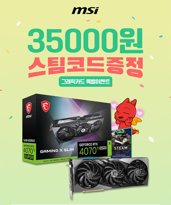 MSI가 MSI 그래픽카드를 구매한 고객들에게 스팀 월렛 35,000원 코드를 증정하는 행사를 진행한다.