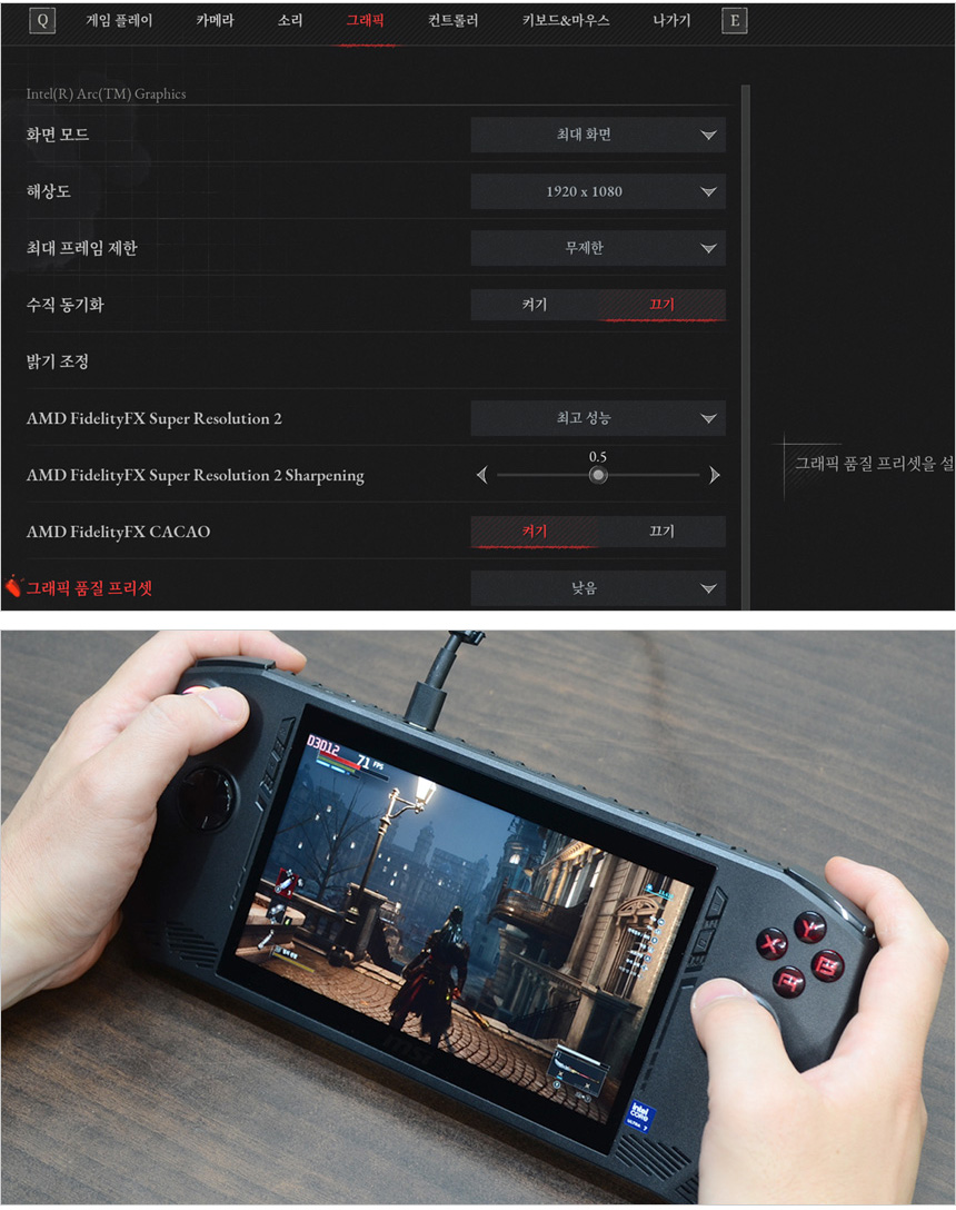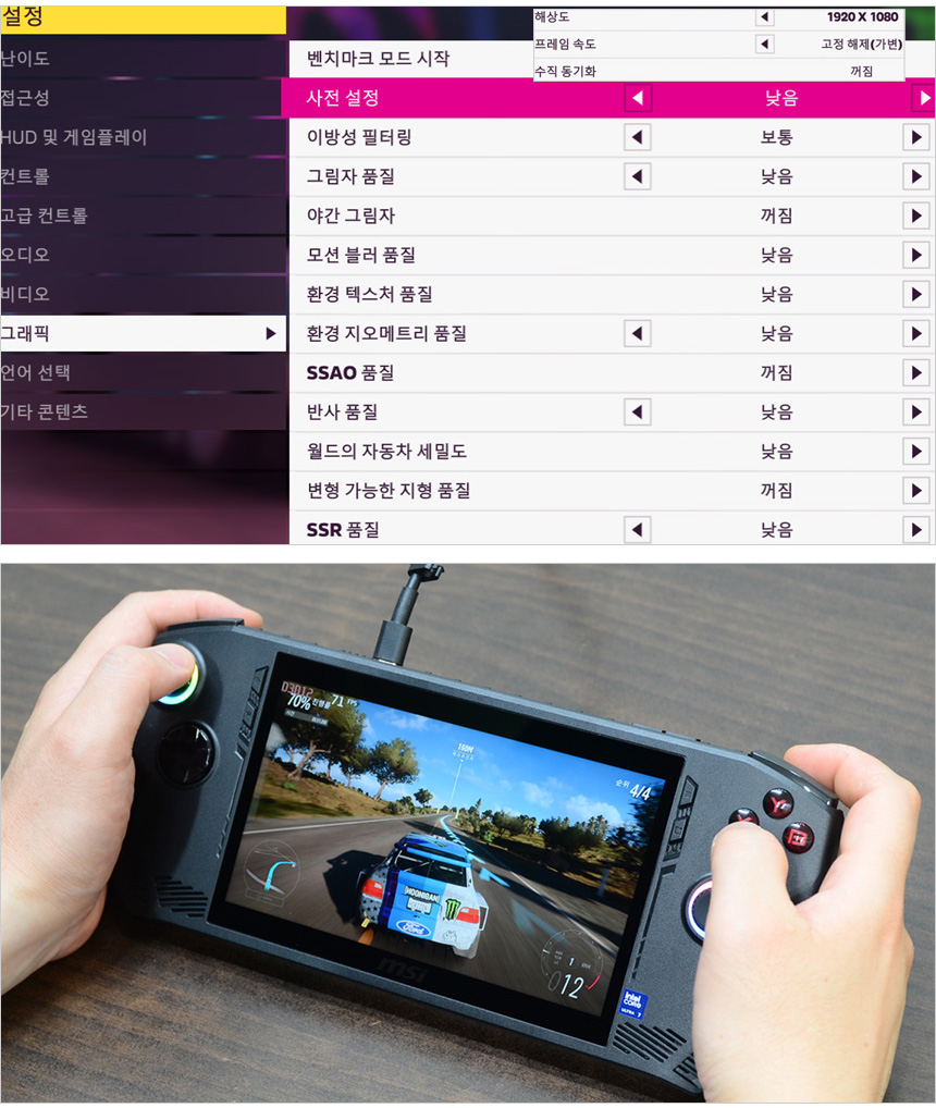 게임 테스트를 진행해 보도록 하자. 모든 게임은 FHD 해상도로 진행했으며 옵션은 최대한 낮추었다. (옵션을 낮추어도 화면크기가 작아 퀄리티가 떨어지지 않는다.) 오버부스트는 사용하지 않은 상태에서 최고성능 모드를 적용했으며 Xess 나 기타 업스케일링 기술은 모두 사용했다. 또한 전원이 연결된 상태에서 테스트를 진행했다.