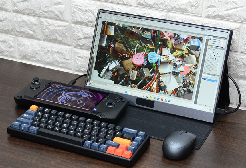 이 제품은 미니PC 대용으로도 활용할 수 있다. 시중에 판매하고 있는 포터블 모니터는 터치도 지원해 썬더볼트 4 단자에 연결해주면 어디서나 업무를 볼 수 있다. (참고로 시중에 판매되는 비슷한 스펙의 미니PC의 가격은 100만원을 훌쩍 넘어간다.) 자리를 옮겨가며 작업하는 하이브리드 업무 환경에서 유용하게 사용할 수 있을 것이다. (디스플레이 확장 설정후 기기의 화면으로는 메일이나 기타 정보를 확인하는 용도로 사용하면 된다.)