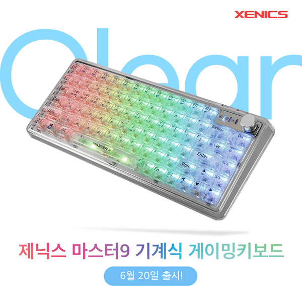 이번 출시되는 제닉스 마스터9 키보드는 투명한 클리어 디자인과 1,680만 컬러의 RGB 조명을 지원하여 다양한 색상과 조명 효과를 제공한다.