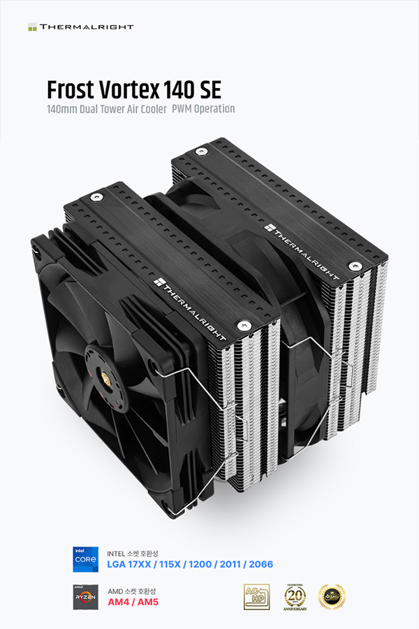 서린씨앤아이가 서멀라이트의 CPU 쿨러 신제품, 프로스트 볼텍스 140 SE를 정식 출시했다.