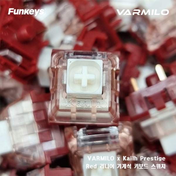 VARMILO x Kailh 콜라보레이션 Prestige 시리즈 스위치는 바밀로와 카일의 공동 작업으로 새롭게 탄생한 고품질 스위치로 윤활 공정을 적용하여 저소음과 정제된 타건감으로 스위치 고유의 뛰어난 피드백과 내구성을 높여 즐거운 타이핑 경험을 제공합니다. Prestige 스위치는 총 3가지로 압력이 낮아 편안하게 타건이 가능한 라이트축, 적당한 반발력으로 기계식 키보드 고유의 타건감을 느끼실 수 있는 적축, 조용한 환경에서 사용하기 적합한 저소음축으로 구성되어 사용자의 사용환경에 따라 선택할 수 있다.