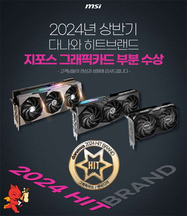 MSI는 2024년 상반기 소비자들로부터 가장 많은 사랑을 받은 국내 최고 인기 브랜드로 선정되는 ‘다나와 히트브랜드’에서 ‘엔비디아’ 그래픽카드 부문을 수상했다고 발표했다.