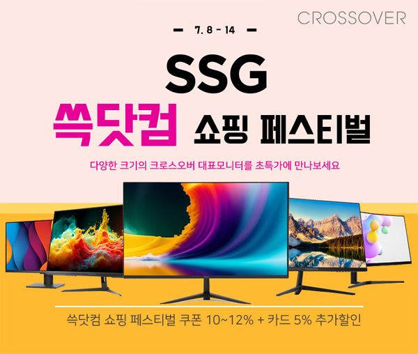 크로스오버는 자사의 인기 포터블, 보급형, 게이밍 모니터 61종을 대상으로 신세계 쓱닷컴 쇼핑 페스티벌 7월 특가전을 진행한다고 밝혔다.