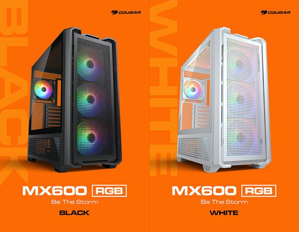 쿠거의 MX600 RGB는 미들타워 규격의 PC케이스로 미니 ITX부터 최대 E-ATX까지의 메인보드 규격을 지원한다. 여기에 8개의 확장 슬롯과 넓은 내부 공간을 활용한 최대 400mm 길이의 장착 공간은 고성능의 대형 VGA 장착도 지원해 고사양 시스템 구축에 유리하다. 여기에 블랙과 화이트로 나뉘어진 제품 색상은 하나로 통일된 시스템 컬러링 구성에도 이점을 제공한다. MX600 RGB는 전면 패널 전체와 측면 강화유리 패널과 분리된 하단 패널에 사각형 메쉬 패널이 적용됐다. 원형의 메쉬 패널보다 더 원활한 공기 유입 환경을 제공하도록 만들어진 이 사각의 메쉬 패널은 약 11% 가량 증가된 공기 유입량을 가지며 전면 전체와 측면 하단에서 흡기 환경을 구현, 시스템을 이루는 하드웨어의 발열을 효과적으로 제어할 수 있다.