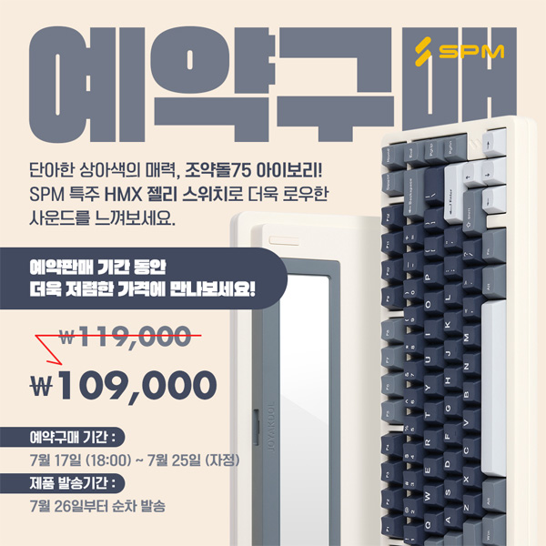 이번 SPM 조약돌75 아이보리 키보드 예약구매는 7월 17일 오후 6시부터 7월 25일 자정까지 진행될 예정이며, 7월 26일부터 순차적으로 발송될 예정이다.