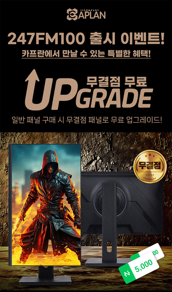 모든 온라인몰을 대상으로 7월 24일(수) ~ 8월 7일(수)까지 진행되는 이번 출시기념 행사에서 124,000원에 판매되는 247FM100 IPS 100 멀티스탠드 일반 버전을 구입하면 134,000원에 판매되는 무결점 모델로 출고된다.(1만원 할인 효과) 이 외에 스마트스토어에서 텍스트 리뷰 작성시 2,000포인트, 포토/동영상 리뷰 작성시 5,000포인트를 지급하고, 고객의 부담을 덜기 위해 배송비는 무료로 진행된다. 구매제품은 7월 26일 금요일부터 순차 출고된다.